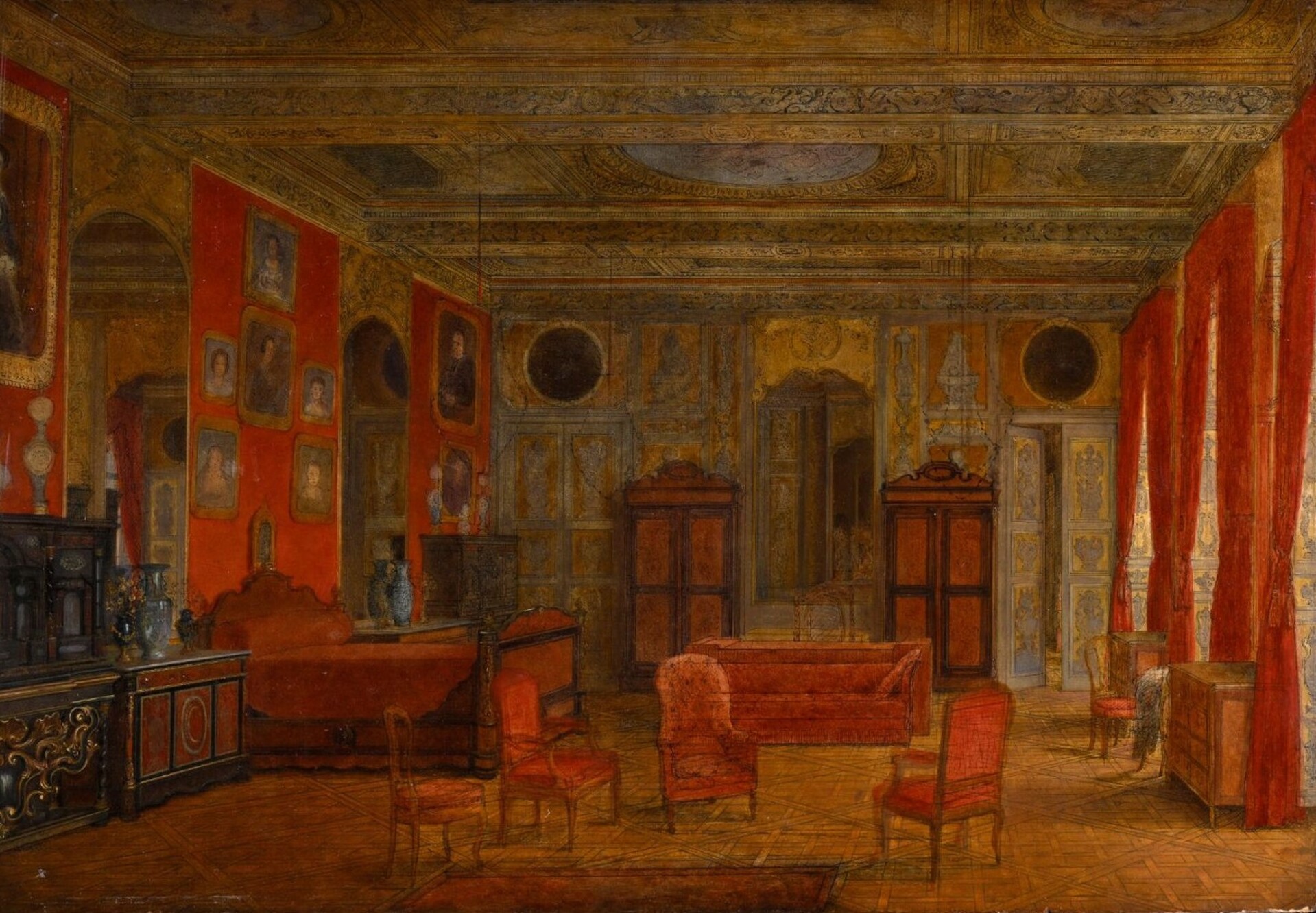 Fundacja Trzy Trąby zakupiła obraz (datowany na poł. XIX w.) przedstawiający jedno z wnętrz Hôtel Lambert, który od 1843 r. należał do rodziny Czartoryskich. Oprócz tego, że Hôtel Lambert był wspaniałą rezydencją, stał się głównym ośrodkiem polskiego obozu emigracyjnego we Francji. Obraz olejny, malowany na desce z widocznym rysunkiem, przedstawia Złoty Salon, który słynął z dekoracji malowanych en grisaille na złotym tle (z poł. XVII w.) oraz pięknie rzeźbionych filarów autorstwa Nicolasa Pineau (z 1750 r.). Złoty Salon znajdował się na drugim piętrze pałacu, po 1843 r. został przekształcony przez Czartoryskich na sypialnię. Fundacja, w ramach wieloletniego depozytu, przekazała obraz do zbiorów Muzeum w Nieborowie i Arkadii.